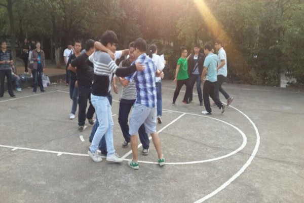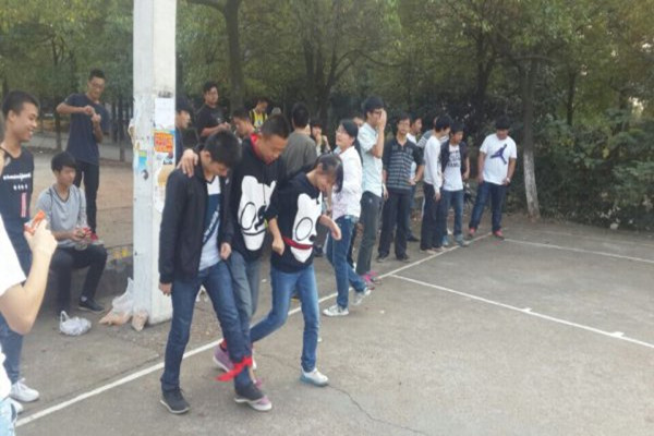 在团支书宣读此次团活的活动背景和主题之后,就直接进入了户外游戏环节。同学们分为2个队,每队15人,从热身比赛“三人四足”到考验团队合作的“数青蛙”游戏,电气二班的同学们都表现得十分积极。最后的重头戏“丢沙包”更是点燃了大家的激情,一个个的很是卖力,游戏结束的时候都能看到他们额头上的汗珠。
