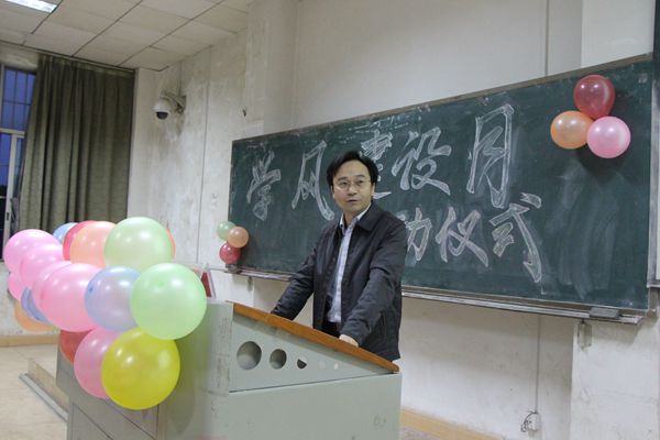 首先,副院长余光辉教授上台讲话。余副院长一共提到了三点内容:①提高认识,全面贯彻落实学风建设;②凝心聚力,发挥班团的模范带头作用,主动采取各类措施;③多管齐下,以各种研究性、创新性学习活动来提高同学们的学习兴趣。