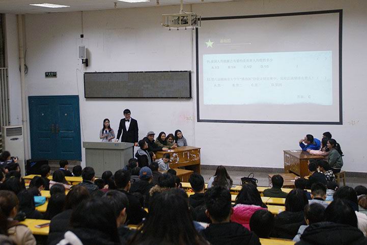 3月22日晚,艺术学院和建筑与艺术设计学院联合举办的科普知识竞赛复赛、决赛在美术楼104顺利拉开帷幕。出席本次竞赛的老师有来自建艺院的郭理老师、刘云峰老师与来自艺术学院的张晶晶老师。艺院的滕子扬同学与建艺院的何曲同学担任本次竞赛主持人。
